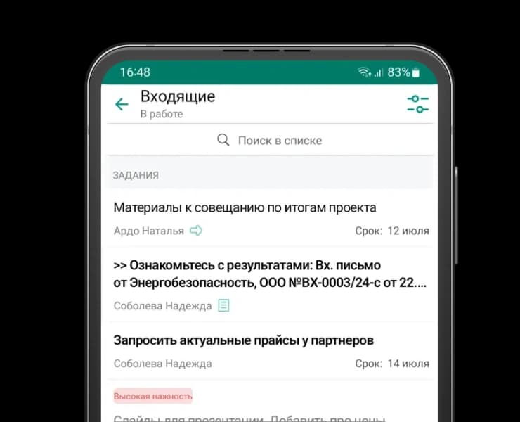Комфортная работа в системе за пределами рабочего кабинета. C любого устройства на базе iOS и Android.